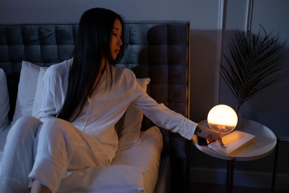Utilize the timer to create a gradual dimming effect, gently easing you into sleep․ This feature mimics a natural sunset, promoting melatonin production and improving sleep quality․ The timer function ensures the light doesn’t remain on unnecessarily, providing both convenience and energy savings․